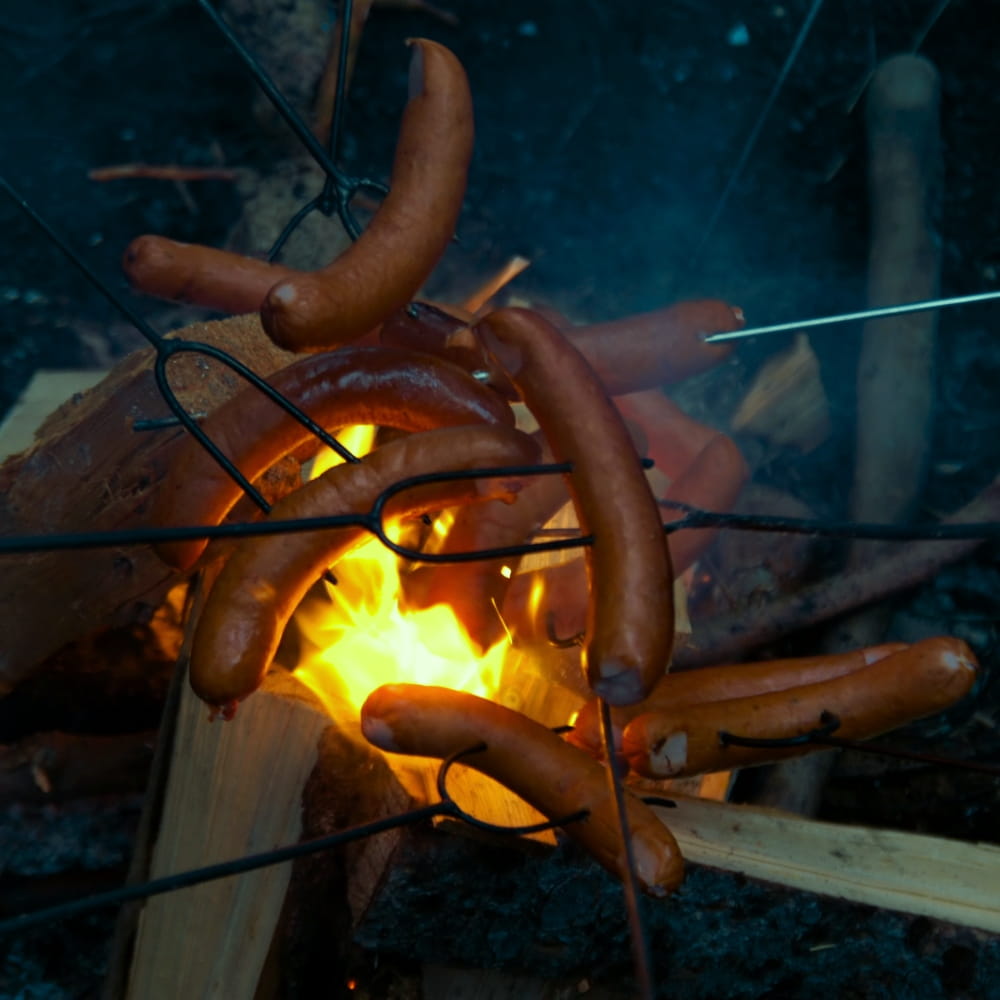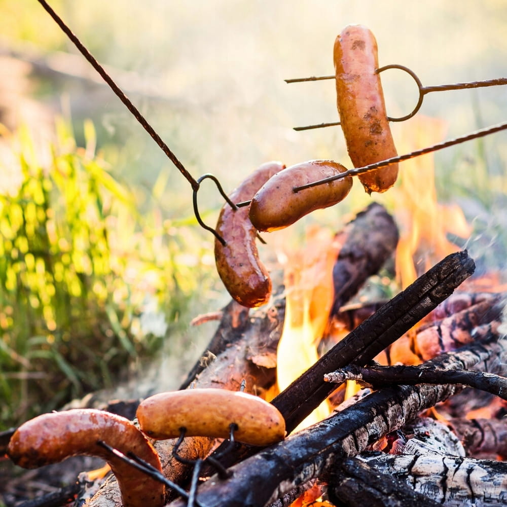 Żaden grill nie stworzy tak świetnej atmosfery jak ognisko. Kiełbaski należy nakłuć na widelce, posypać przyprawą do grilla i trzymać nad ogniem aż się upieczą.