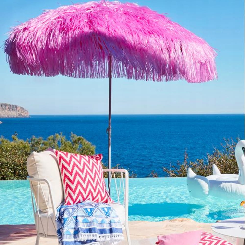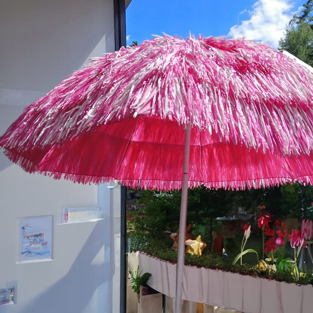 Dostępny w 3 kolorach- róż, beż oraz błękit. Parasol ma unikalny, tropikalny wygląd, który wprowadzi atmosferę Hawajów do każdej przestrzeni.