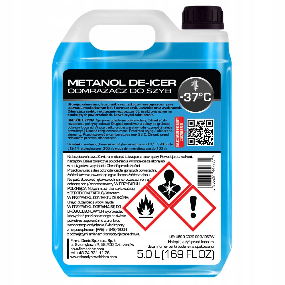 Oferujemy wysokiej jakości profesjonalny odmrażacz na bazie metanolu, przeznaczony do stosowania w warunkach ekstremalnych temperatur. Specjalnie opracowana receptura bardzo szybko rozpuszcza lód i szron, pozostawiając szyby przejrzyste, gładkie i wolne od zarysowań.
