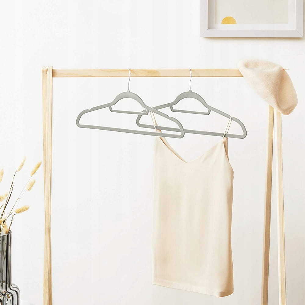 Wieszak posiada specjalne żłobienia, które zapobiegają zsuwaniu się ubrań, a dodatkowo pozwalają powiesić sukienki na ramiączkach i inne ubrania, które spadają ze standardowych wieszaków.