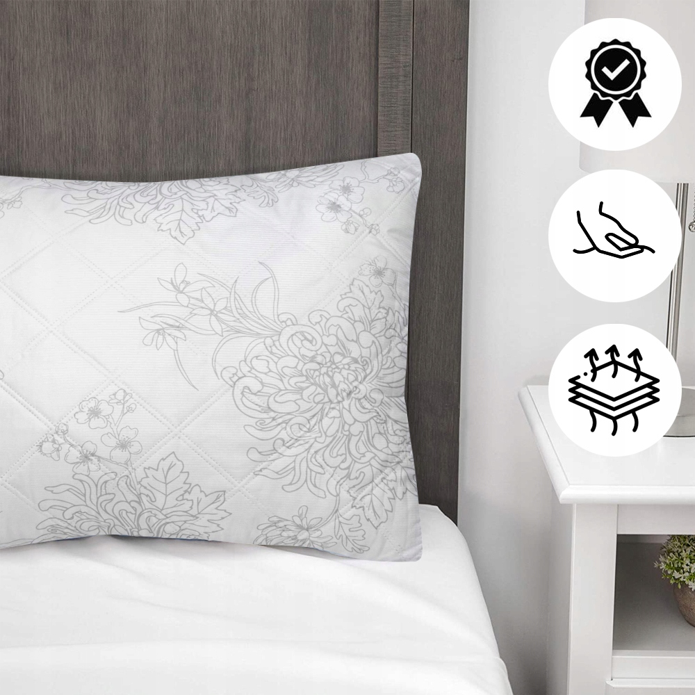 Poduszka pikowana jest bardzo lekka, miękka i przewiewna, dzięki czemu zadbasz o spokojny i zdrowy sen swój i swojej rodziny. Idealnie dopasowuje się do kształtu głowy oraz szyi.