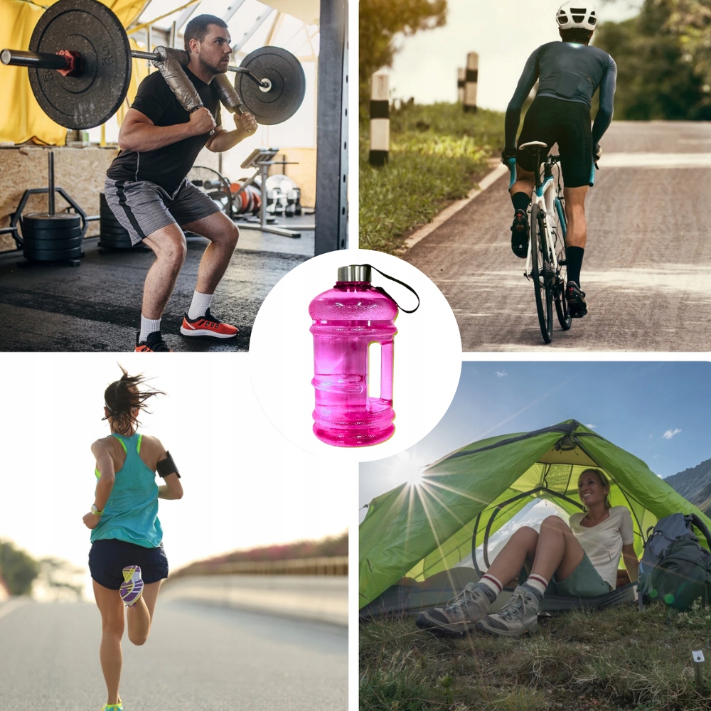 Butelka jest idealną opcją do przenoszenia wody lub innych napojów w podróży, do pracy, szkoły, czy na trening. Zabierz ją na siłownię, używaj podczas długich spacerów lub biwakowania. Dzięki pojemności 2200 ml doskonale nadaje się również na długie podróże samochodem lub dni w biurze.