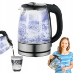 CZAJNIK ELEKTRYCZNY BEZPRZEWODOWY SZKLANY LED 1,7L 2200 W STAL DUŻY MOCNY