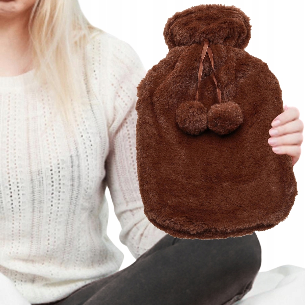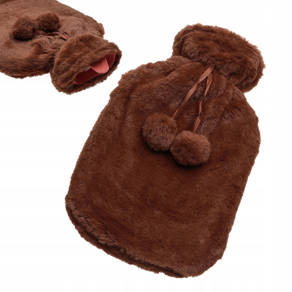 DUŻY TERMOFOR GUMOWY W POKROWCU OGRZEWA PLUSZOWY W SWETERKU NA WODĘ BRĄZOWY