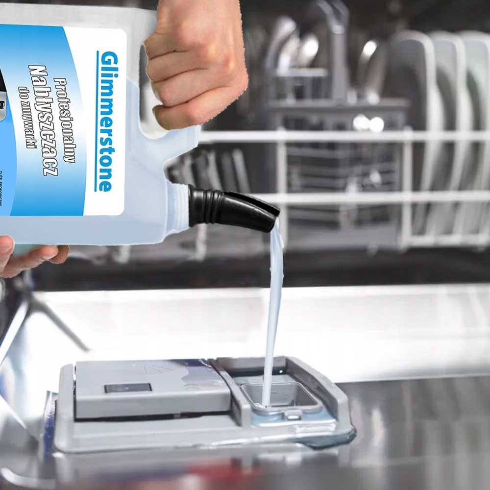Płyn nabłyszczający Glimmerstone zapewnia idealne suszenie i zapobiega plamom wody na naczyniach i szklankach. Silna formuła ochronna chroni Twoje naczynia przed zmętnieniem, zapewniając dłużej promienny połysk.