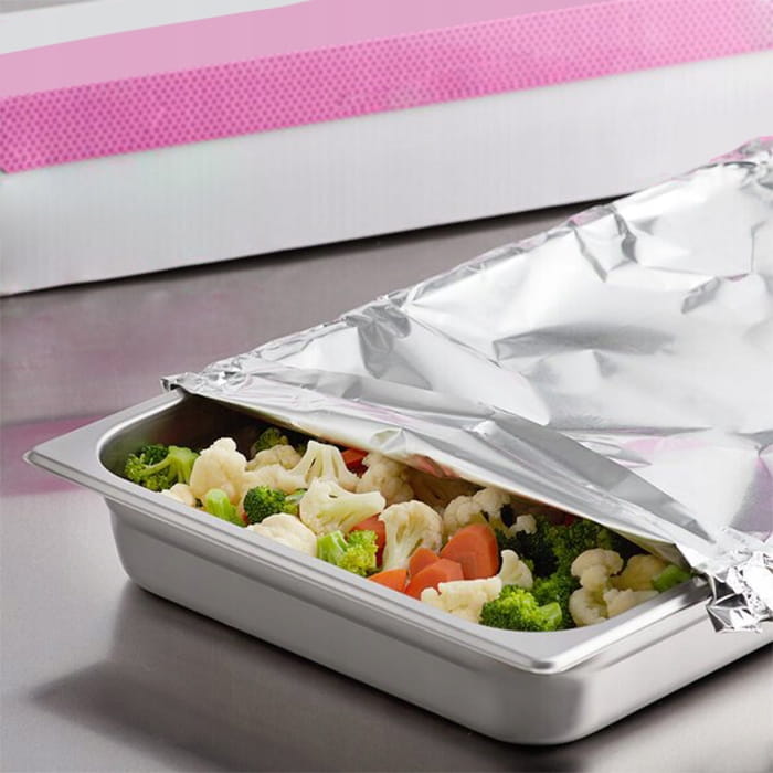 Aluminiowa folia jest odporna na wysoką temperaturę, więc nie topi się pod wpływem ciepła. Chętnie więc używamy jej do pieczenia, smażenia i grillowania. Wykładamy nią formy na ciasto, by nie przywierało do ich powierzchni, owijamy w nią też dania wsadzane do piekarnika, żeby szybciej się upiekły.