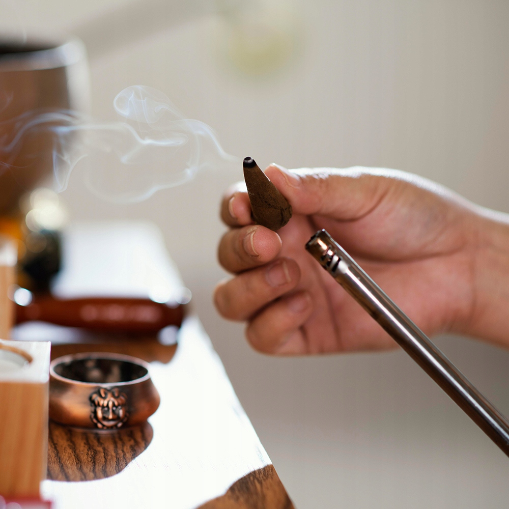 - Zbliż płomień i przytrzymaj przez kilka chwil, aż kadzidło zacznie się tlić.