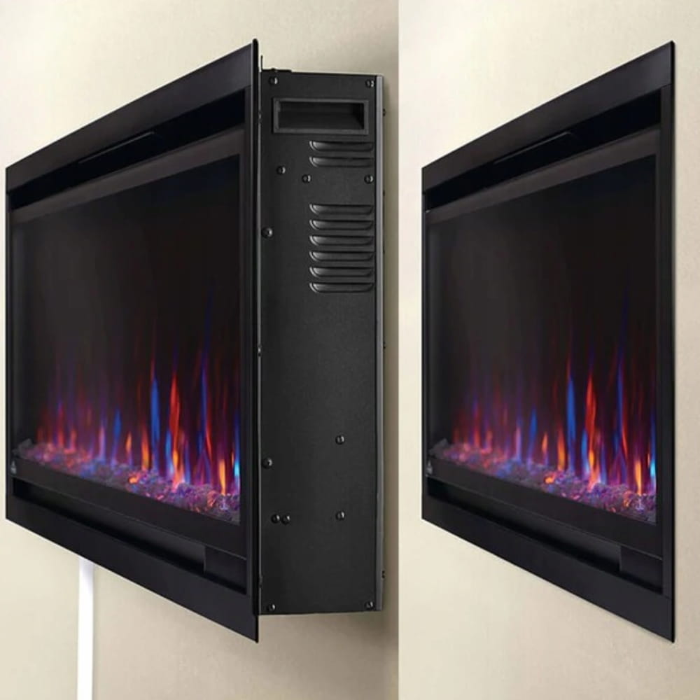 Aby zapewnić dobrą widoczność, kominek elektryczny należy zamontować na wysokości oczu z perspektywy swojego ulubionego miejsca. Zalecamy zainstalowanie kominka elektrycznego (do montażu na ścianie lub do wbudowania w ścianie) na dużej wolnej przestrzeni. Wymaga około 20 cm wolnej przestrzeni powyżej ze względu na funkcję grzewczą i kilkucentymetrowych odstępów z trzech pozostałych stron w celu uzyskania optymalnego efektu. Aby nasz kominek działał wystarczy podłączyć go do prądu. Nie potrzebujemy podłączenia do komina jak w tradycyjnych kominkach.
