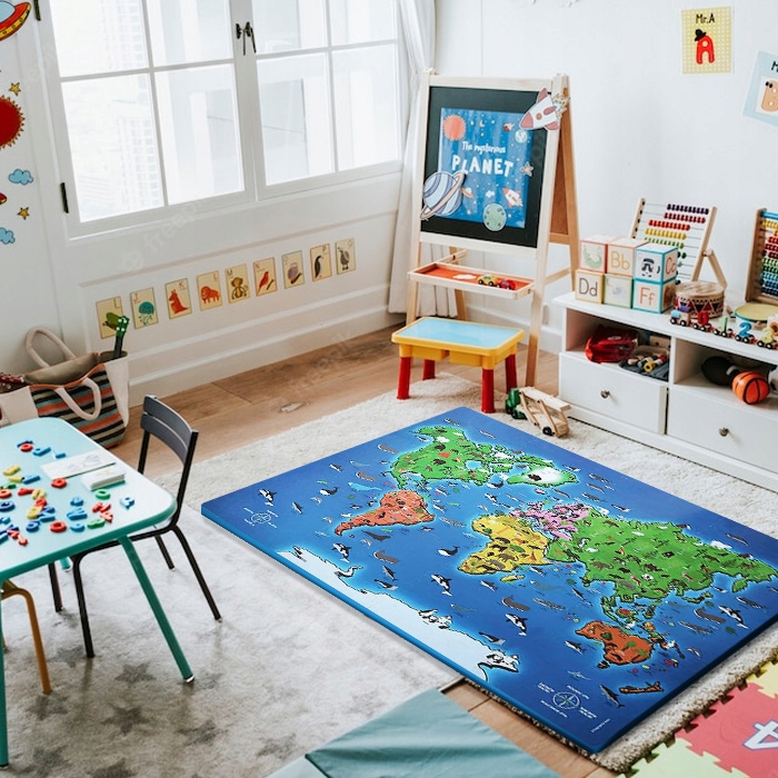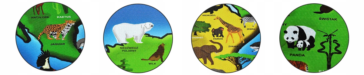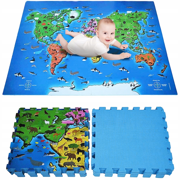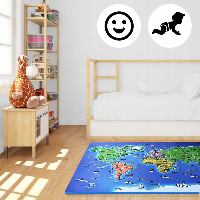 Fascynujący świat fauny i flory poznasz z naszą matą edukacyjną dla dzieci. 12-elementowy zestaw pokazuje mapę świat oraz zwierzęta i rośliny charakterystyczne dla poszczególnych regionów. Teraz możecie wspólnie odkrywać, gdzie chowa się kangur i gdzie leży ojczyzna króla dżungli – lwa.