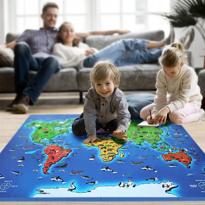 MATA EDUKACYJNA DUŻA PIANKOWA 160x120 cm MAPA ZWIERZĘTA