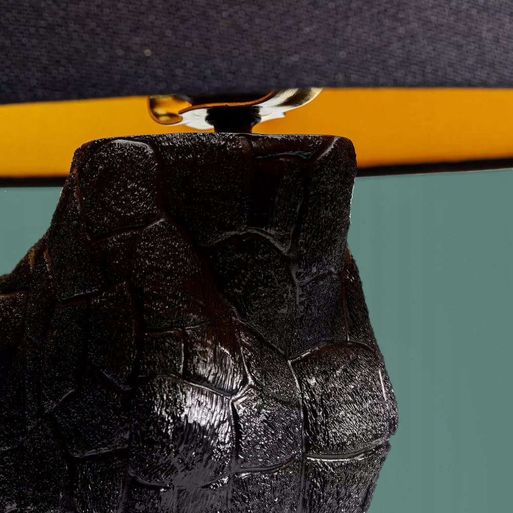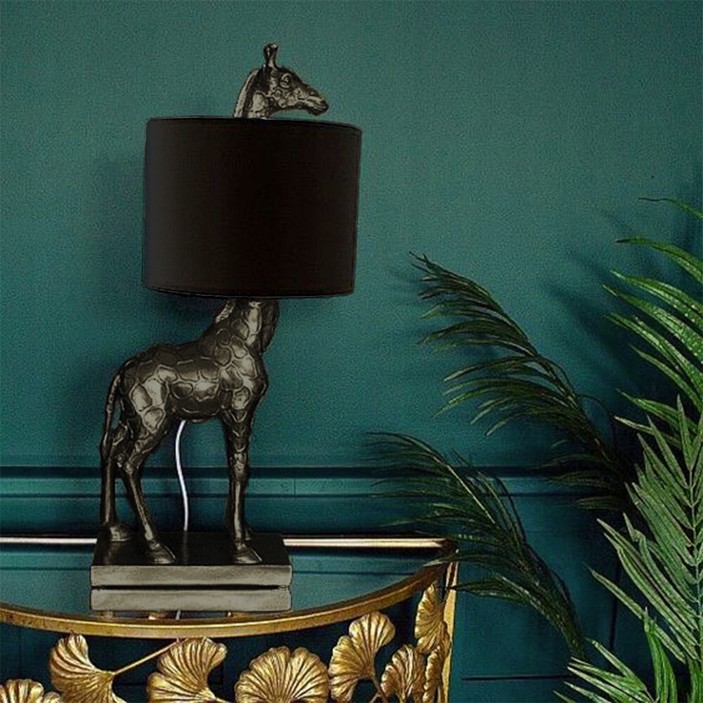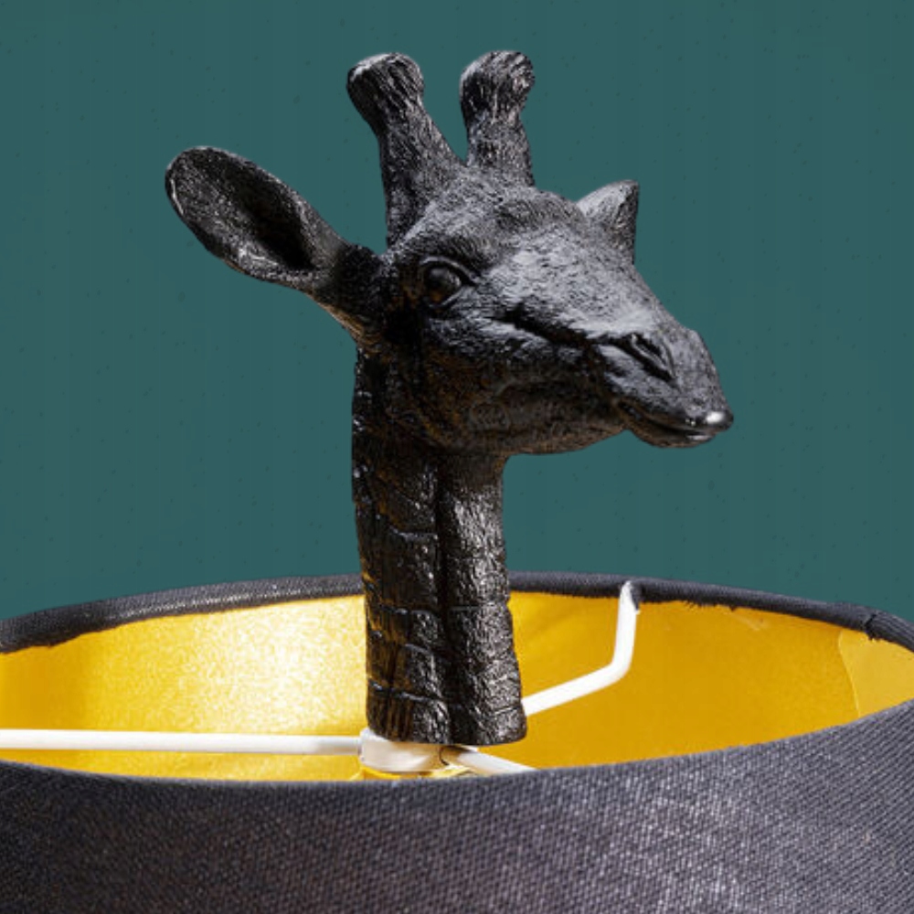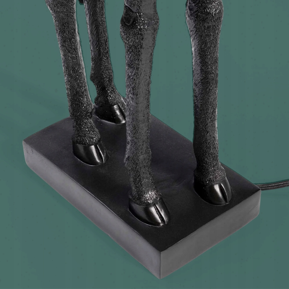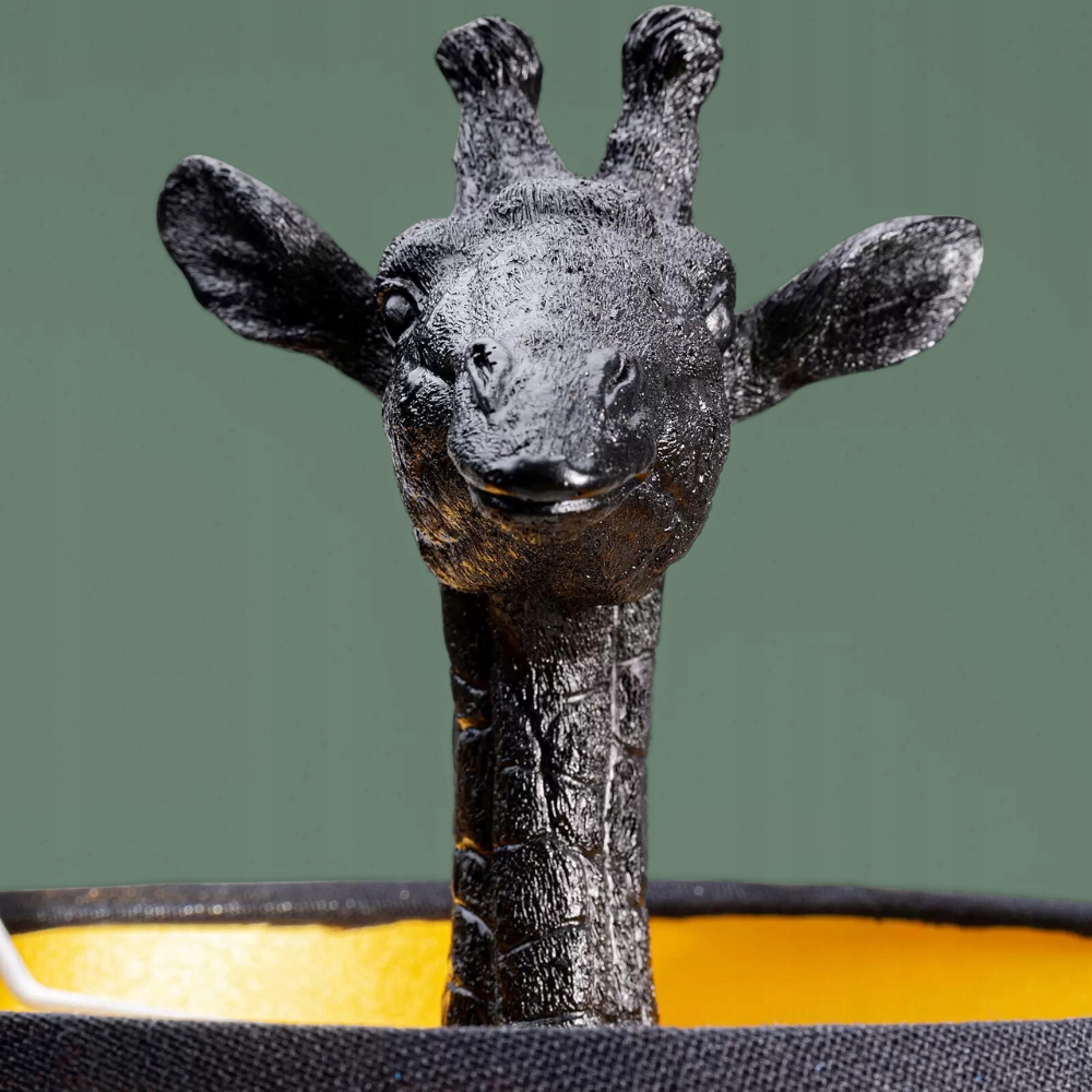 Podstawa lampy w kształcie figurki żyrafy stanowi wyróżniający się element. Wykonana z wysokiej jakości materiałów, i pokryta czarnym kolorem, dodaje lampie prestiżu i luksusowego wyglądu.
