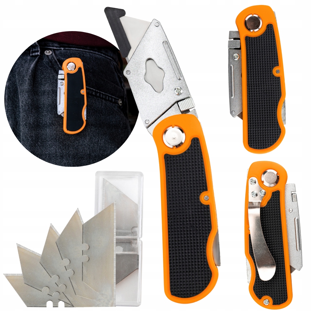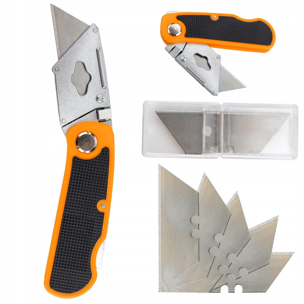 NÓŻ DO TAPET SKŁADANY TAPECIAK DO CIĘCIA Z OSTRZEM TRAPEZOWY 5 OSTRZY NOŻYK