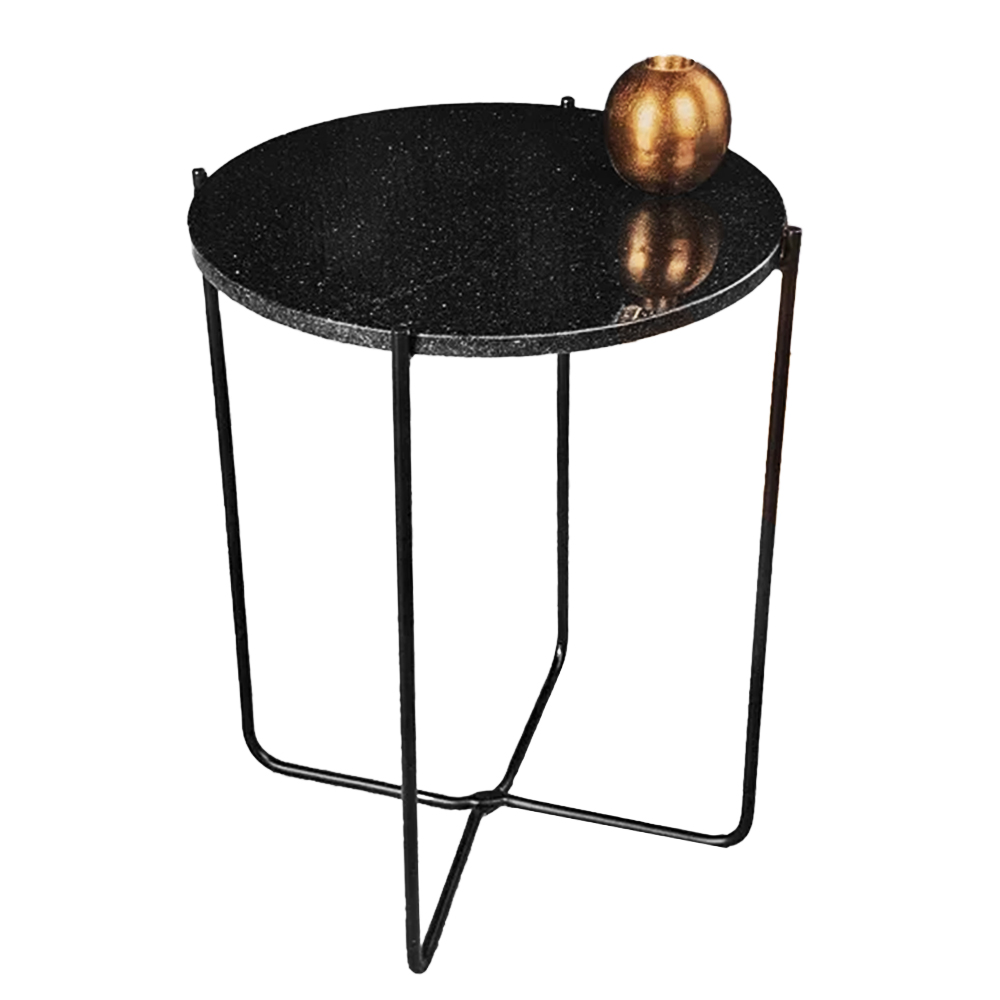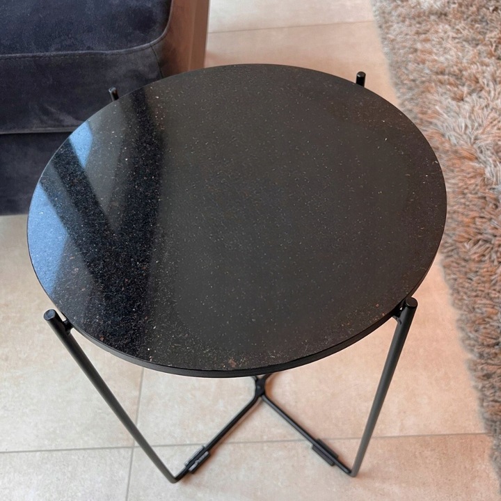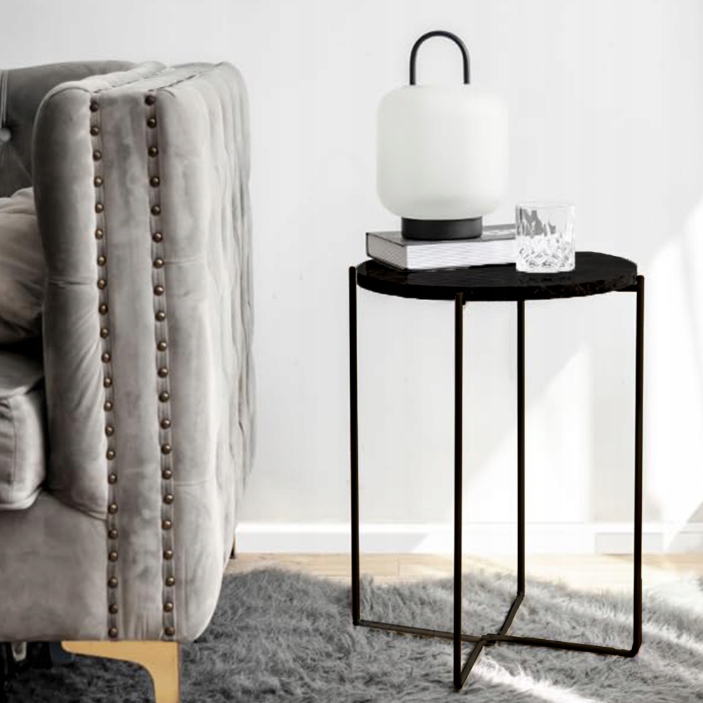 OKRĄGŁY STOLIK KAWOWY MARMUROWY BLAT CZARNY PRAWDZIWY KAMIEŃ 49cm PREMIUM