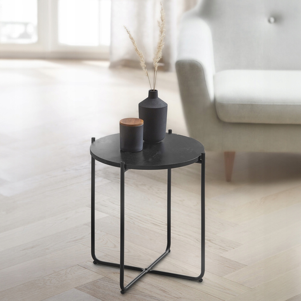 OKRĄGŁY STOLIK KAWOWY MARMUROWY BLAT CZARNY