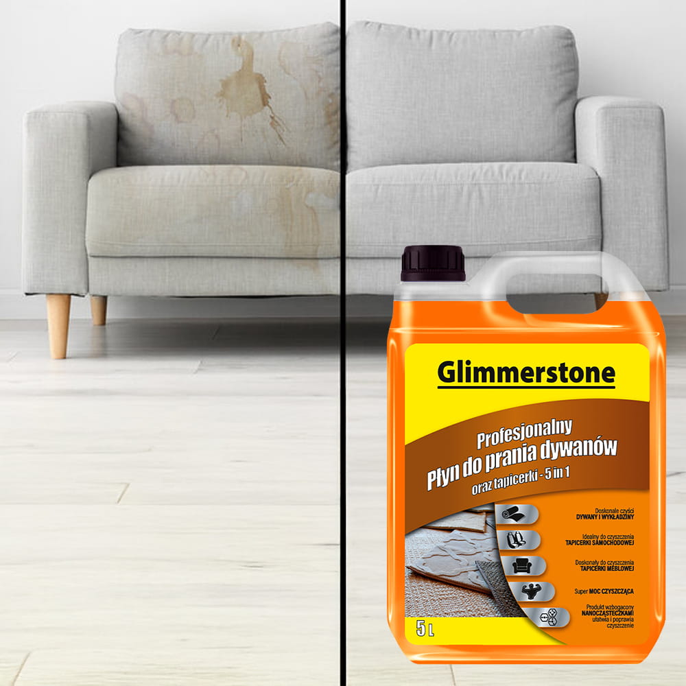 Glimmerstone usuwa zabrudzenia z dywanów i tapicerek już za pierwszym razem. Eliminuje 3 razy więcej sierści, błota i ziemi oraz skutecznie neutralizuje nieprzyjemny zapach.