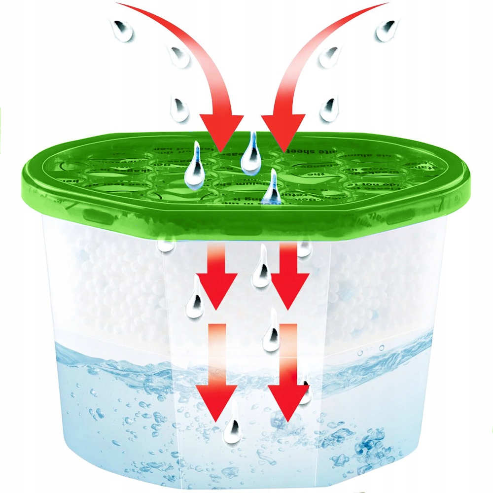 Pochłaniacz wilgoci redukuje zawartość wody w powietrzu do optymalnego poziomu 55 - 60%. Po uzyskaniu tego poziomu proces wchłaniania wilgoci zatrzymuje się i ponawia gdy tylko wilgotność wzrośnie.