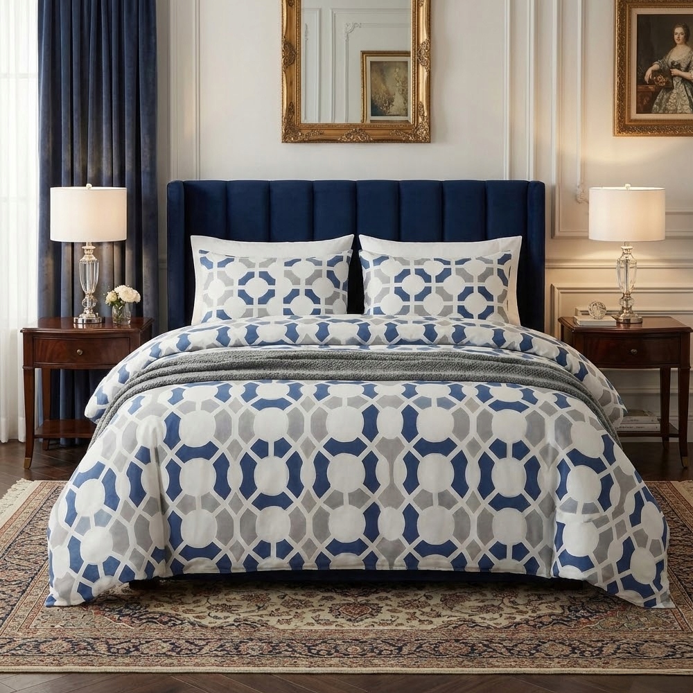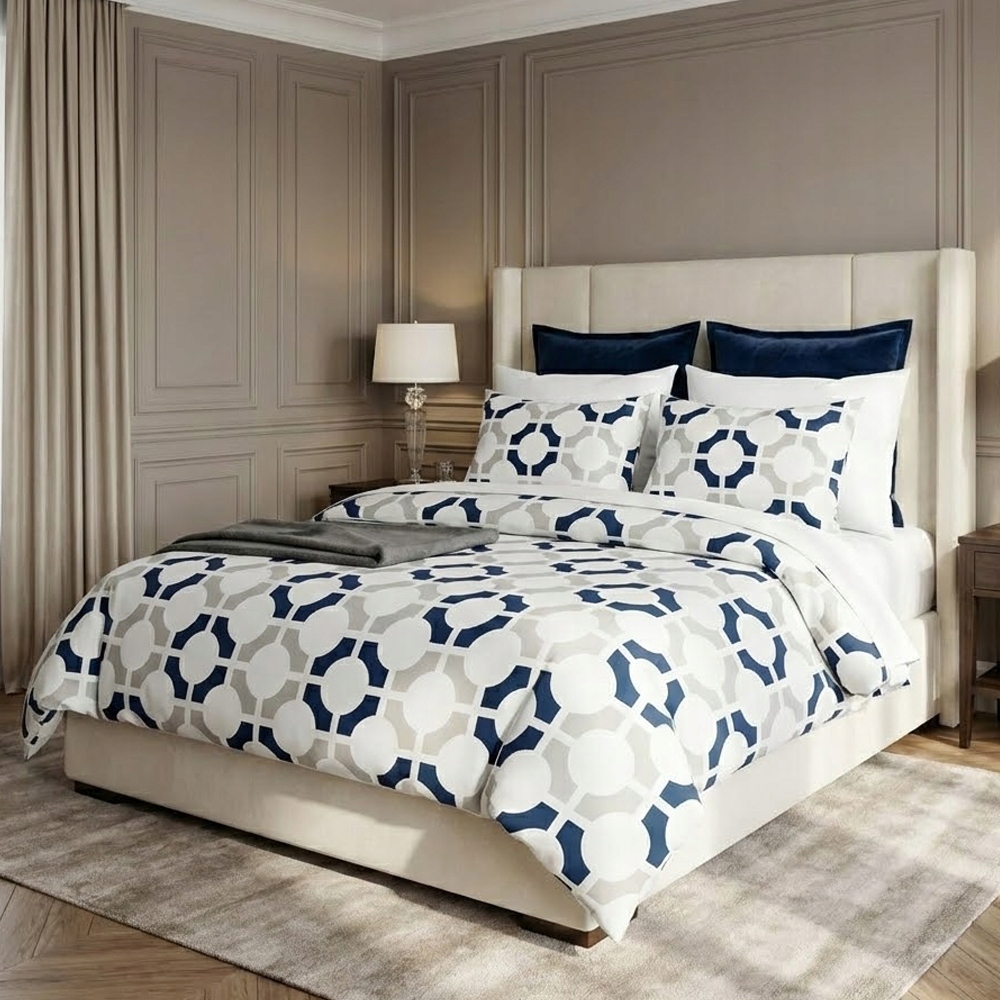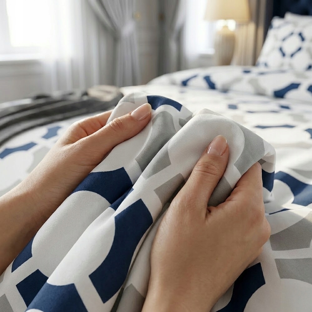 Zestaw prezentuje się w sypialni wyjątkowo nowocześnie i stylowo. Miękka i lekka tkanina przyjemnie otula skórę, zapewniając komfortowy sen. Specjalna technika tkania sprawia, że włókna są bardziej wytrzymałe, a jednocześnie miłe w dotyku.