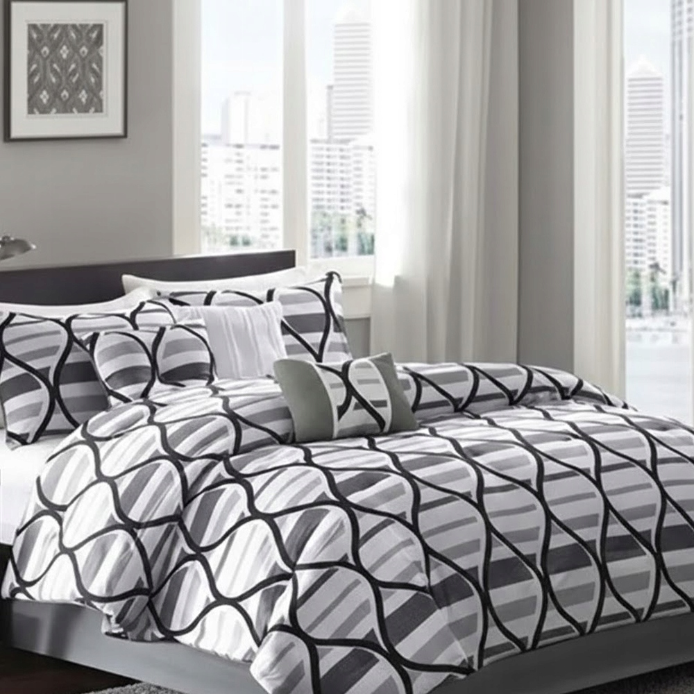 Zestaw prezentuje się w sypialni wyjątkowo nowocześnie i stylowo. Miękka i lekka tkanina przyjemnie otula skórę, zapewniając komfortowy sen. Specjalna technika tkania sprawia, że włókna są bardziej wytrzymałe, a jednocześnie miłe w dotyku.