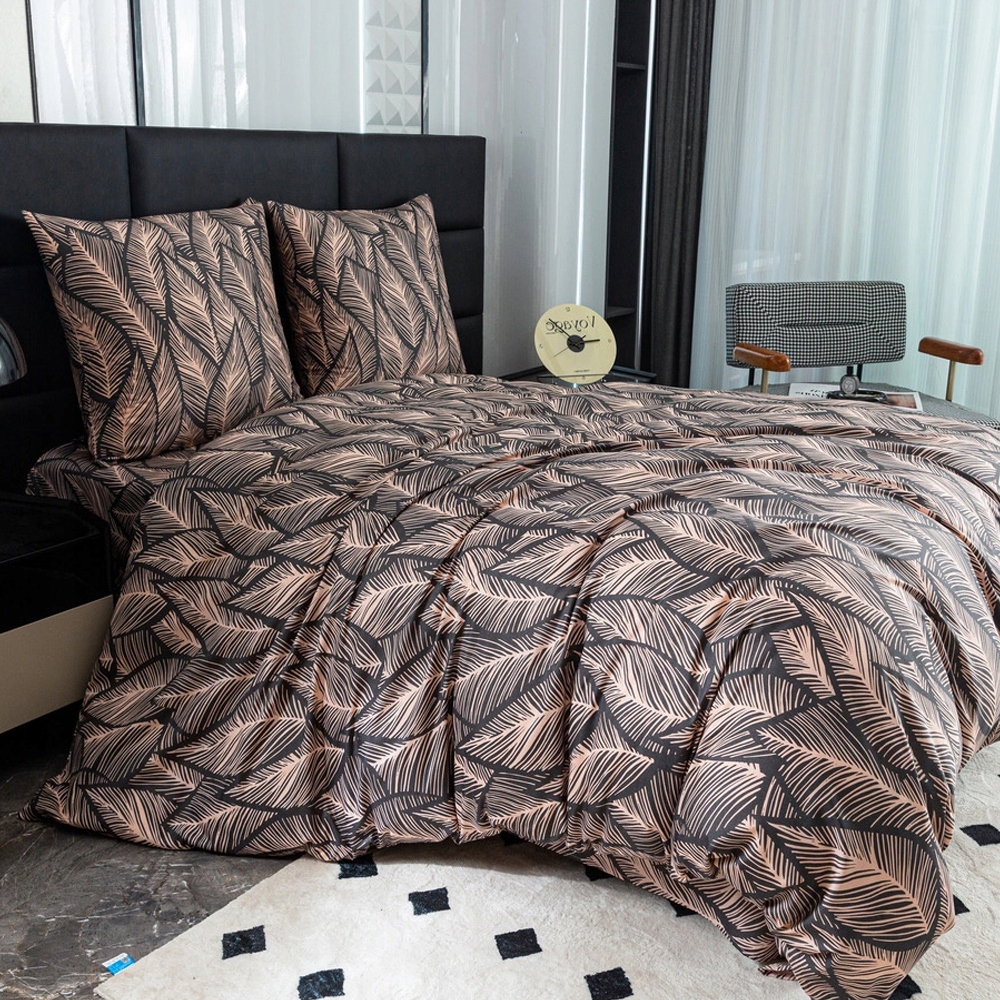 Zestaw prezentuje się w sypialni wyjątkowo nowocześnie i stylowo. Miękka i lekka tkanina przyjemnie otula skórę, zapewniając komfortowy sen. Specjalna technika tkania sprawia, że włókna są bardziej wytrzymałe, a jednocześnie miłe w dotyku.