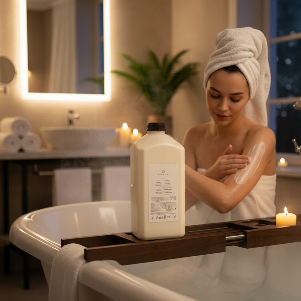 Przeżywaj głębokie doznania podczas codziennej kąpieli, uwalniając zmysły delikatności swojego ciała. Kosmetyk idealny dla eleganckich hoteli, spa i apartamentów.