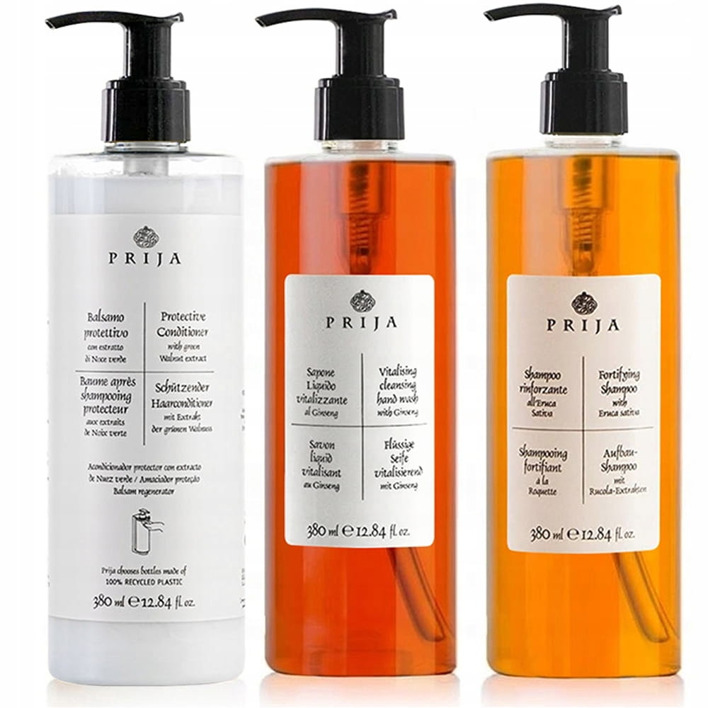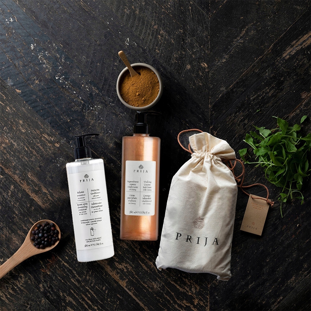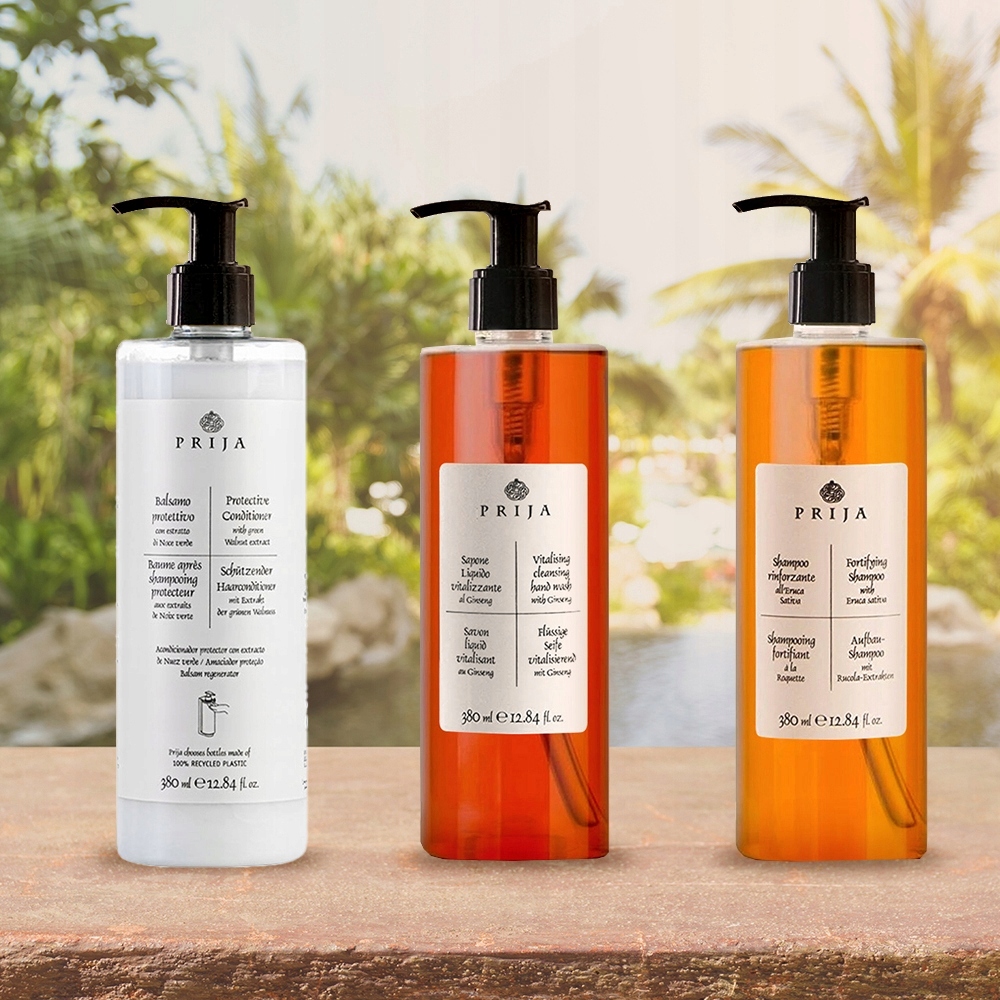 Zestaw kosmetyków PRIJA bogaty we wszystkie minerały i witaminy których potrzebuje twoje ciało i włosy. Dzięki zastosowaniu wyciągów roślinnych, zestaw posiada właściwości regeneracyjne oraz odżywcze dla włosów i skóry. Regularne stosowanie produktu ogranicza nadmierne wydzielanie sebum oraz regeneruje zmęczoną skórę. Kosmetyki idealne dla eleganckich hoteli, spa i apartamentów.