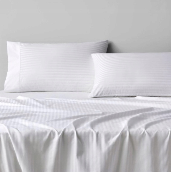 Eleganckie prześcieradło hotelowe z tkaniny Adamaszek, prześcieradło tkane w pasy.