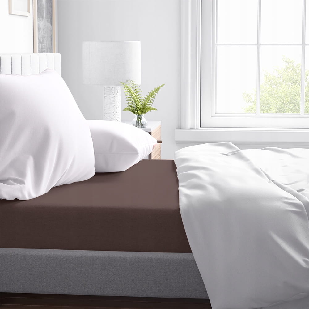 PRZEŚCIERADŁO JERSEY Z GUMKĄ 160x200 cm BAWEŁNA KOLOR BRĄZOWY - JAKOŚĆ