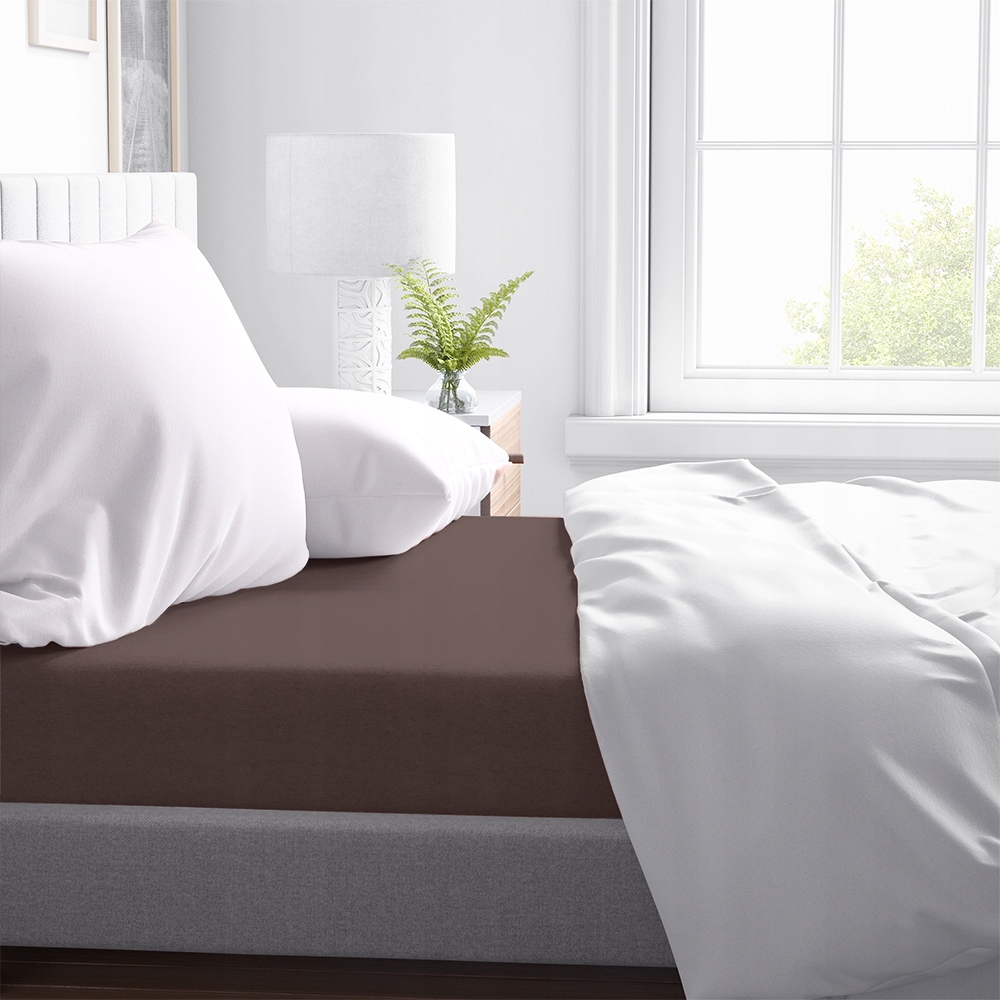 PRZEŚCIERADŁO JERSEY Z GUMKĄ 200x220 cm BAWEŁNA KOLOR BRĄZOWY - JAKOŚĆ