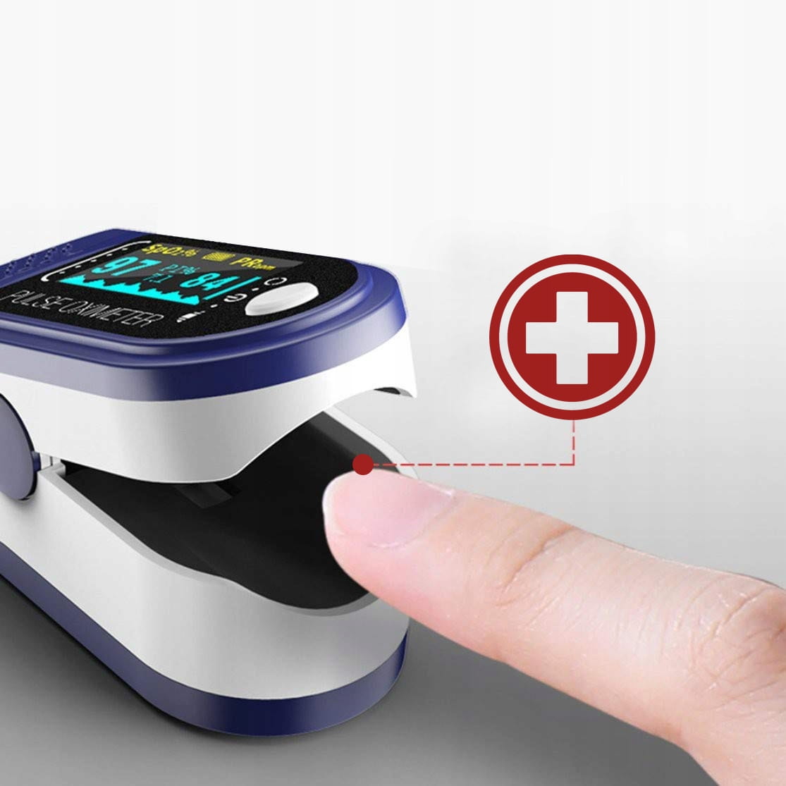 ✅ Wystarczy nałożyć go na palec najlepiej wskazujący i uruchomić przyciskiem.