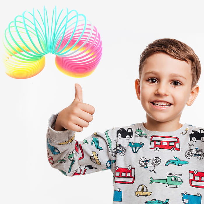Kultowa tęczowa sprężyna, która swą elastycznością zadziwi każdego malucha. Zastosowania dla tej wielokolorowej zabawki można mnożyć - posłuży zarówno za interesujący gadżet.