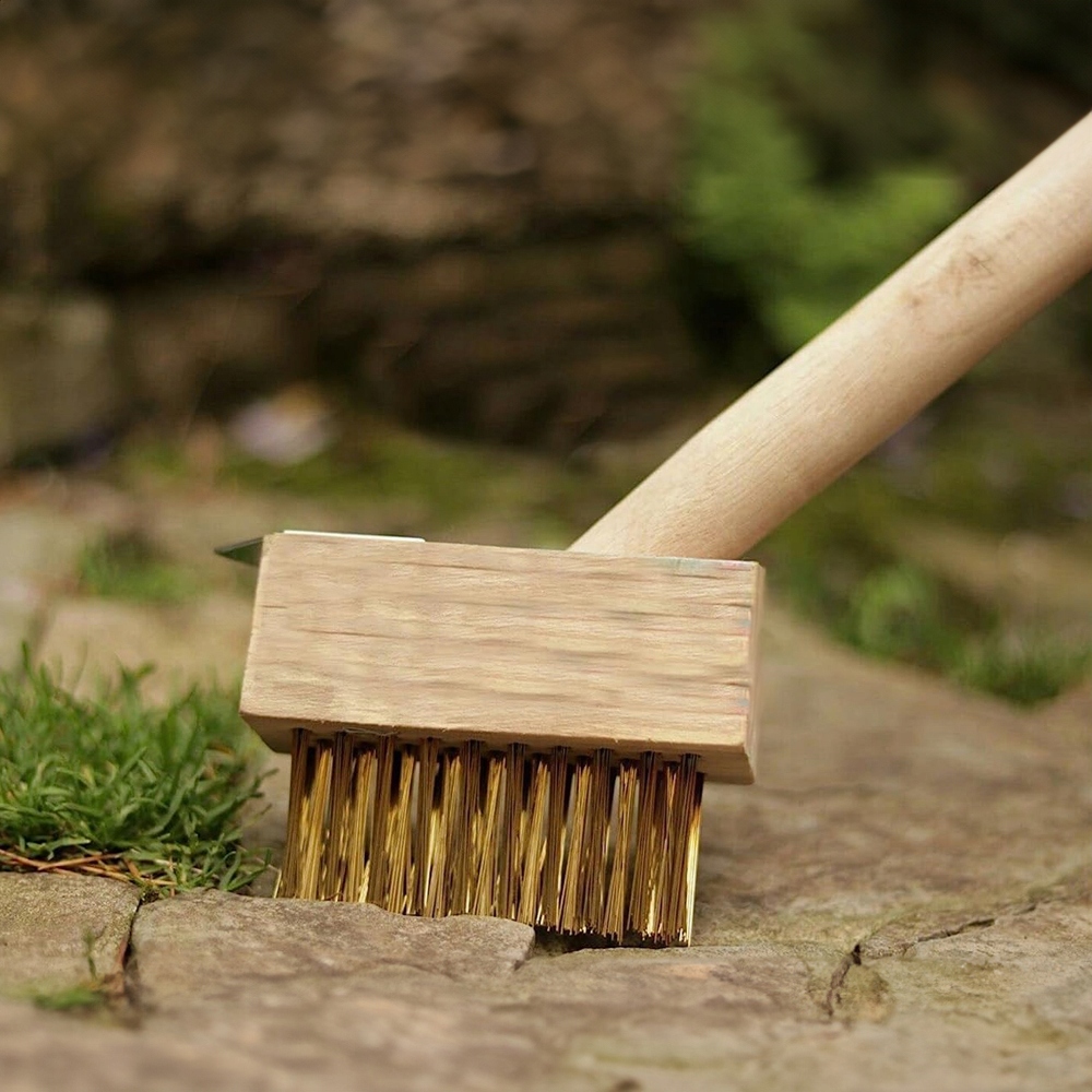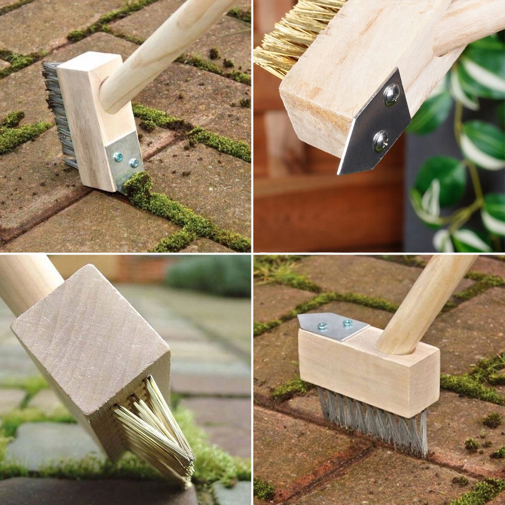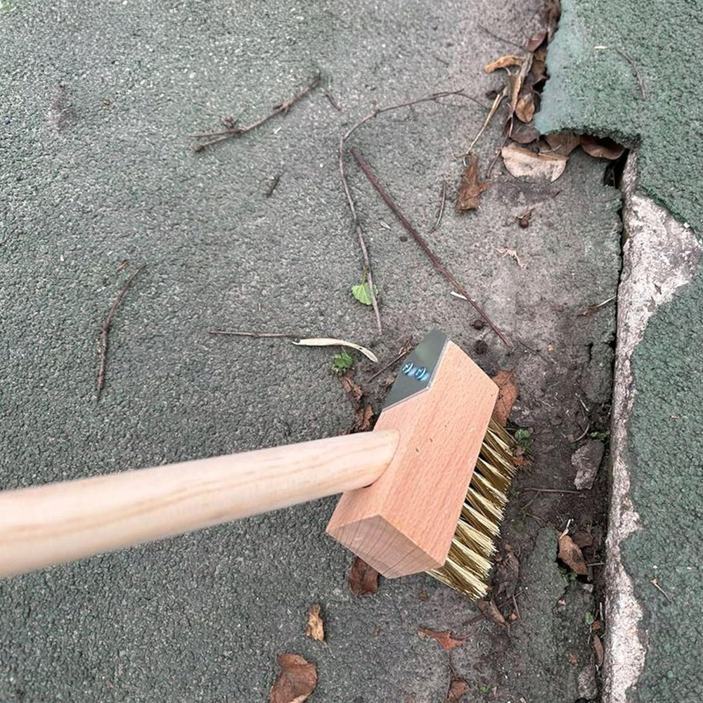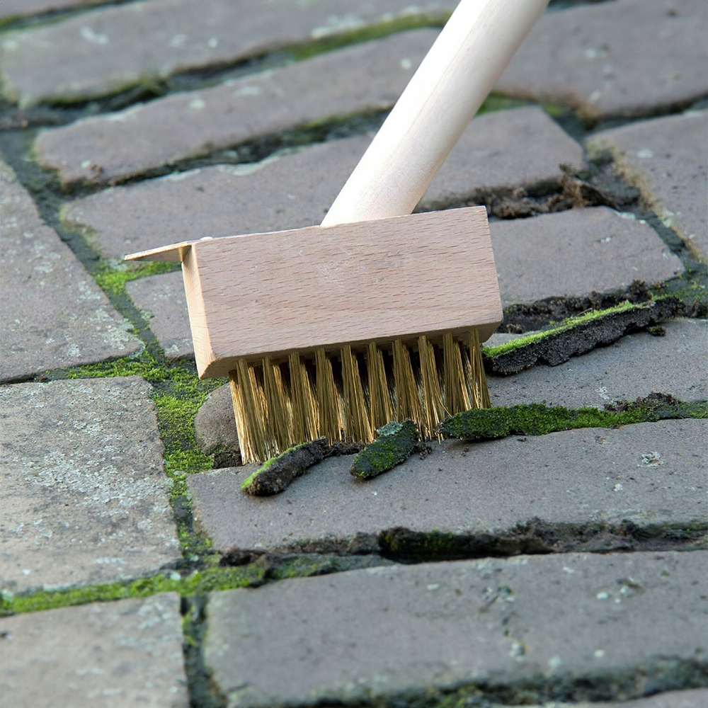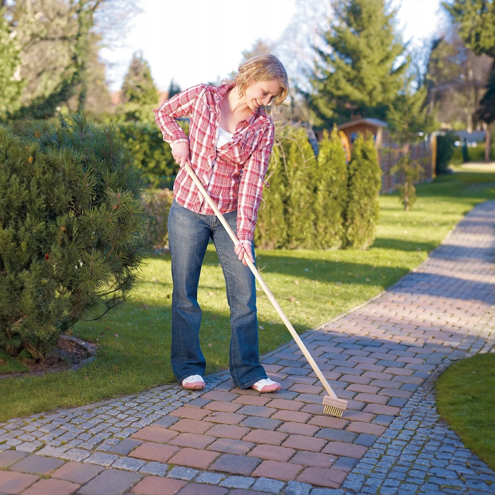 Szczotka została wykonana z wysokiej jakości drewna oraz mocnego stalowego włosia, które skutecznie usuwa mech, chwasty i uporczywy brud ze szczelin między kostką. Trójkątny kształt włosia idealnie dopasowuje się do przestrzeni między płytami, docierając nawet do najtrudniej dostępnych miejsc.