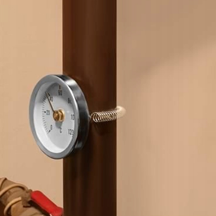 Termometr osiowy. Stosowany do mierzenia temperatury w układach centralnego ogrzewania. Montowany na rurze układu centralnego ogrzewania za pomocą sprężynki (sprężynka w zestawie).