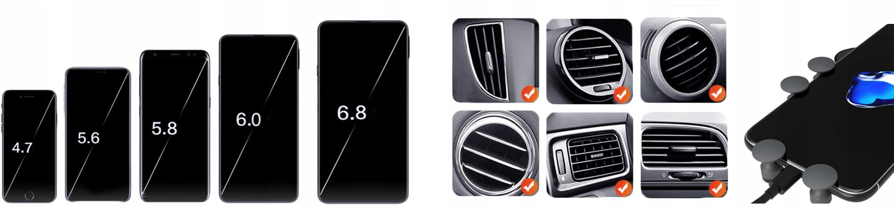 Uchwyt pasuje do każdego telefonu o przekątnej ekranu od 4,0" do 6,8" lub szerokości 6,7cm - 8,6cm.