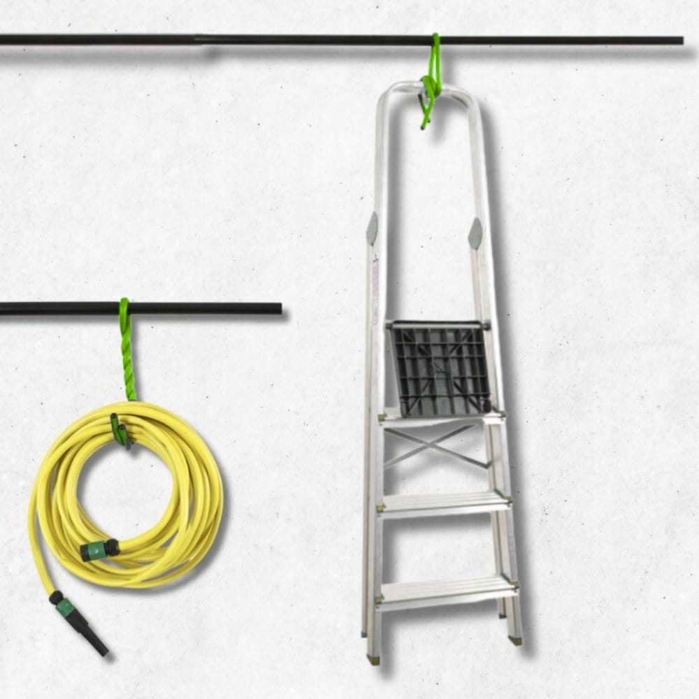 Aby w Twoim garażu zapanował ład, zbierz akcesoria, zwiąż ze sobą zwoje kabli i węży, zawieś w odpowiednim dla Ciebie miejscu i ciesz się porządkiem.