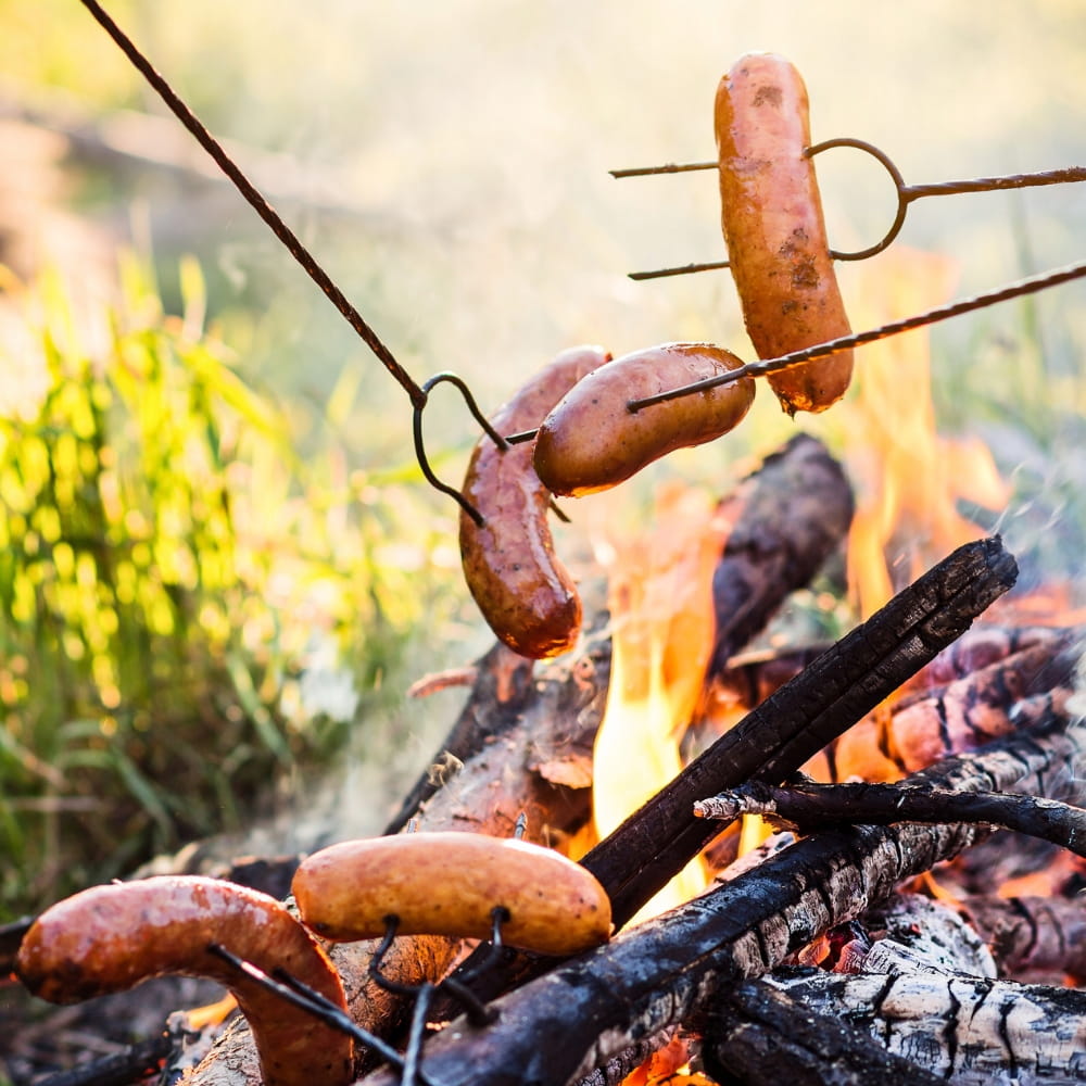 Żaden grill nie stworzy tak świetnej atmosfery jak ognisko. Kiełbaski należy nakłuć na widelce, posypać przyprawą do grilla i trzymać nad ogniem aż się upieczą.