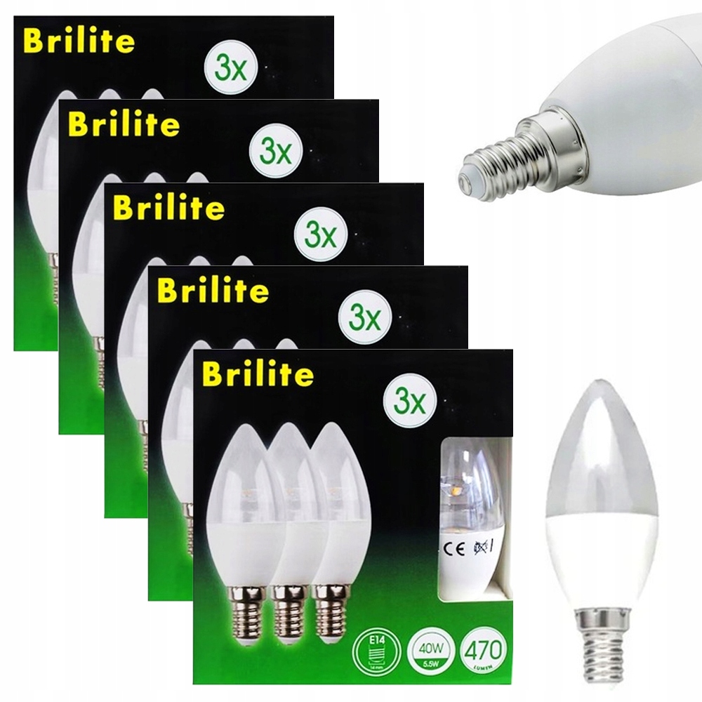 ZESTAW 5x3 szt. BRILITE ŻARÓWKA LED E14 5,5W = 40W B35 CRYSTAL CANDLE